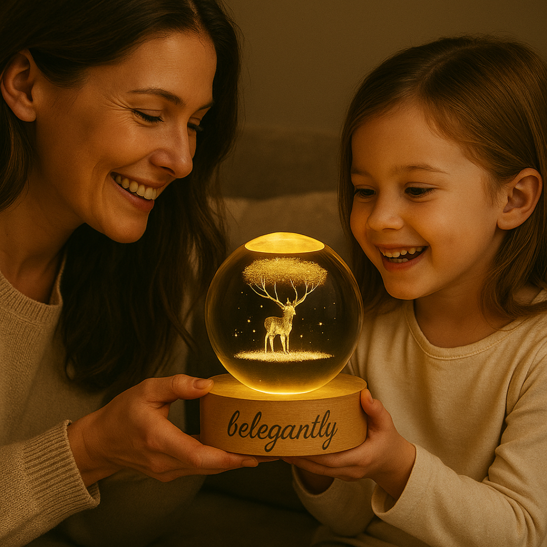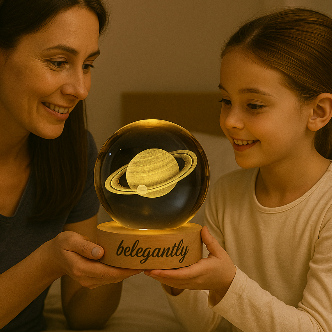 Transform your home with this luxurious crystal night lamp—a perfect fusion of art and ambiance. Crafted from flawless 3.15-inch crystal and set on a sleek wooden base, it reveals a stunning 3D-engraved universe within, brought to life by soft, celestial light.